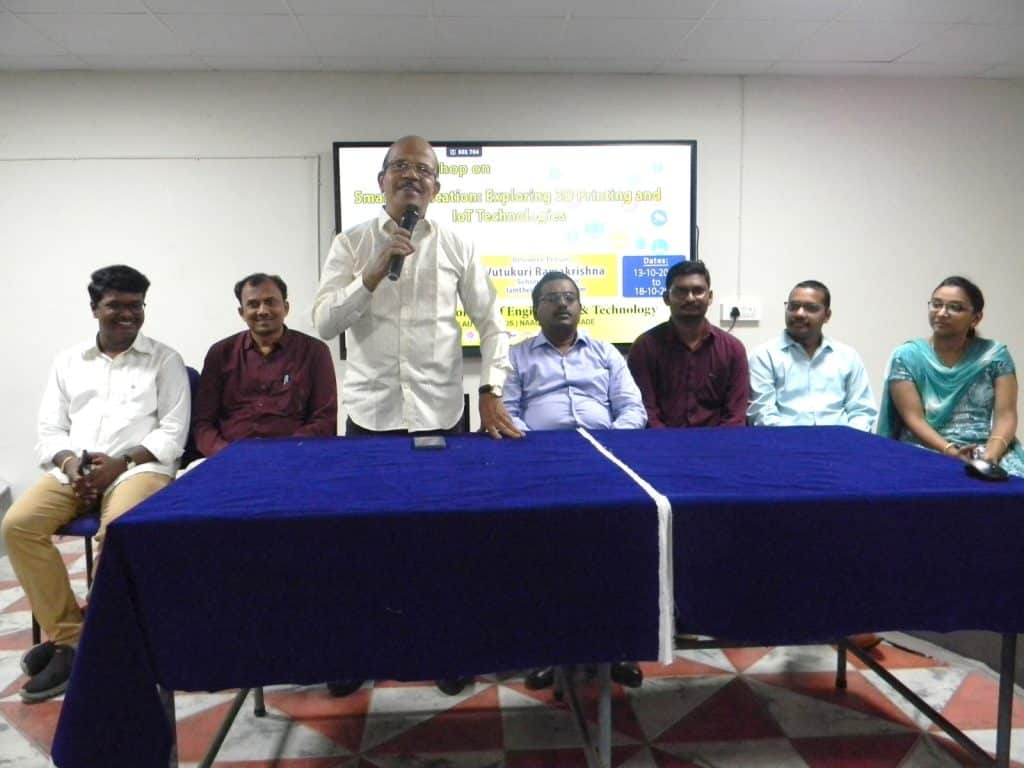 Under the auspices of the Internet of Things (IoT) Department, the workshop was organized for B.Tech students to provide hands-on exposure to modern fabrication technologies. Speaking on the occasion, Dr. K. Jagadeesh Babu, Principal of the college, stated that IoT plays a vital role in the modern era of computer technology and that 3D printing has brought revolutionary changes to the manufacturing sector. He emphasized that complex models can now be developed and tested in a short time and at minimal cost. He also encouraged students to enhance their understanding of 3D Printing and IoT software technologies to secure excellent career opportunities.
