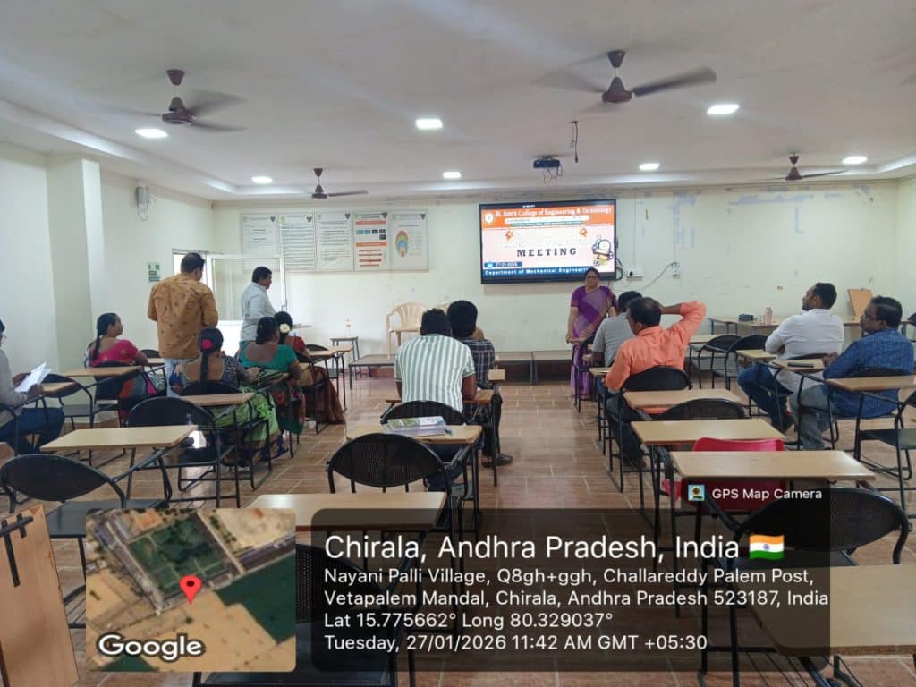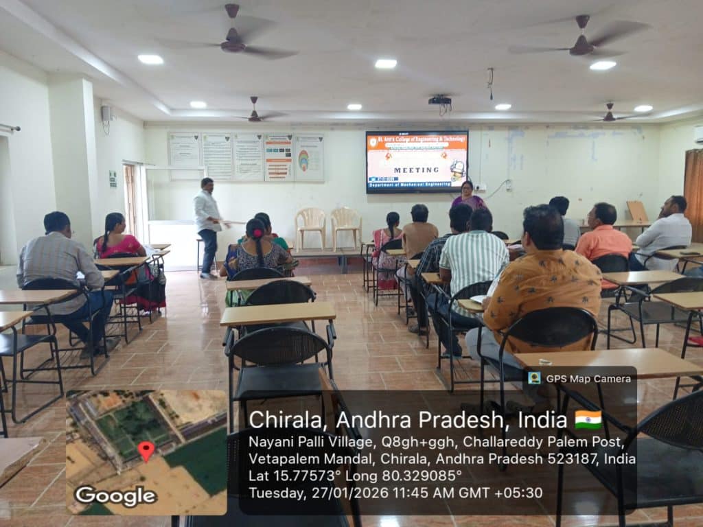 The Department of Mechanical Engineering, St. Ann’s College of Engineering & Technology, Chirala, organized a Parent–Teacher Meeting on January 27, 2026, with the objective of strengthening coordination between parents and faculty members and reviewing students’ academic progress.
